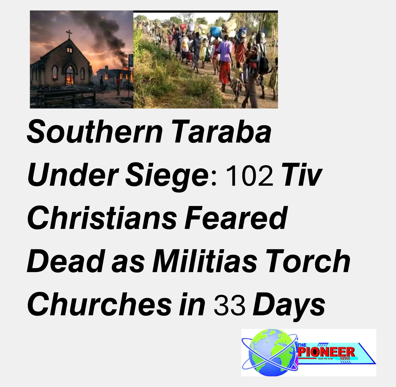 Takum, Taraba State – Southern Taraba is engulfed in fear and grief as reports emerge that 102 Tiv Christians have been brutally killed and multiple churches destroyed over a span of just 33 days. The Northern Christians Religious Leaders Assembly (NOCRELA) revealed that suspected Fulani militia were behind the attacks, which occurred between 2nd JanuaryContinue reading "Southern Taraba Under Siege: 102 Tiv Christians Feared Dead as Militias Torch Churches in 33 Days"
