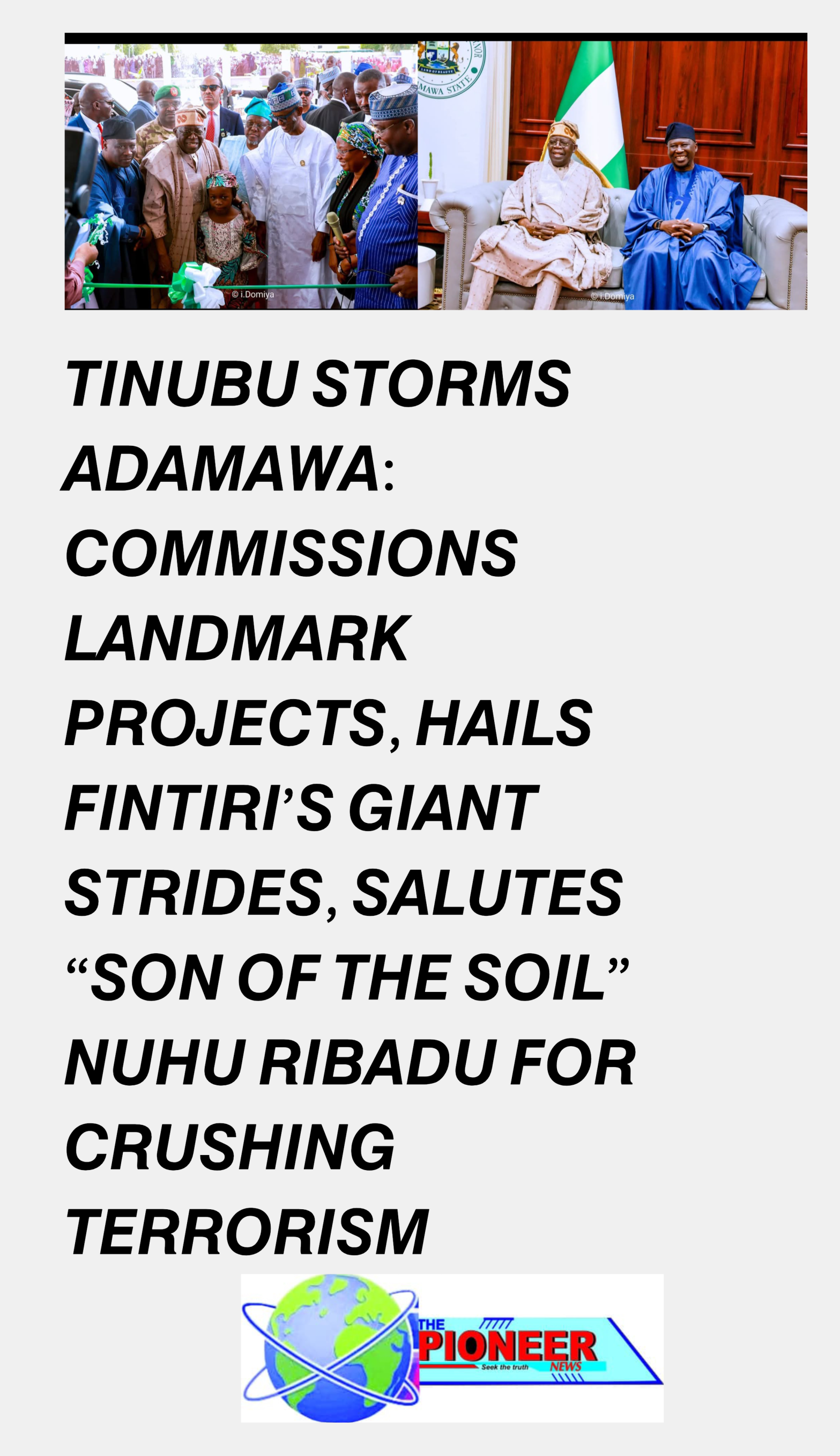 TINUBU STORMS ADAMAWA: COMMISSIONS LANDMARK PROJECTS, HAILS FINTIRI’S GIANT STRIDES, SALUTES “SON OF THE SOIL” NUHU RIBADU FOR CRUSHING TERRORISM