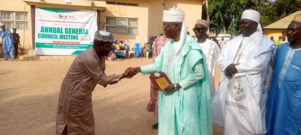 was one of the most prestigious JPRM peace awards since 1997, when it was registered and recognized by law and expressed gratitude to host communities where JPRM Offices and Projects are cited especially Jos/POCC, Ganggama, Taraba, and Kaduna.