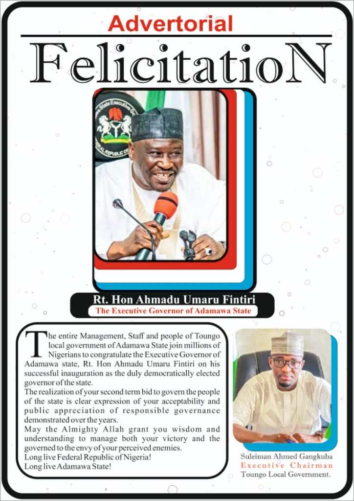 EXECUTIVE CHAIRMAN TOUNGO LOCAL GOVERNMENT COUNCIL CONGRATULATE THE FRESH AIR GOVERNOR Posted byPB ADAMS ENTERPRISESMay 29, 2023Posted inUncategorized Share this: Share on X (Opens in new window) X Share on Facebook (Opens in new window) Facebook Like Loading... Related