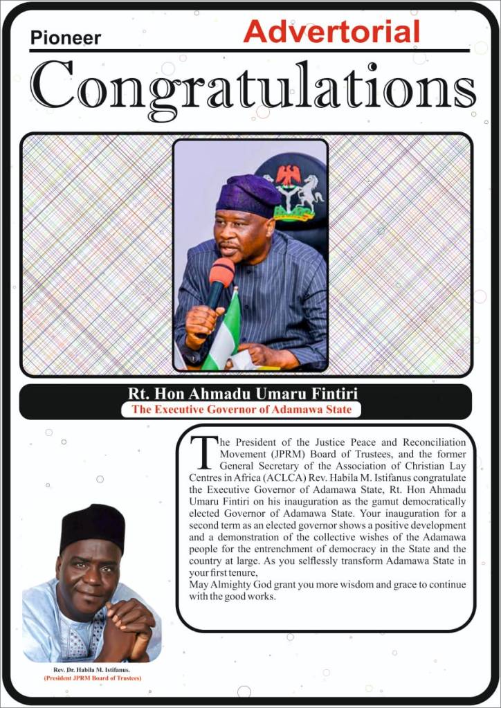 Rev. Dr. Habila M. Istifanus congratulates the Fresh Air Governor. Posted byPB ADAMS ENTERPRISESMay 29, 2023May 29, 2023Posted inCONGRATULATORY MESSAGE Share this: Share on X (Opens in new window) X Share on Facebook (Opens in new window) Facebook Like Loading... Related