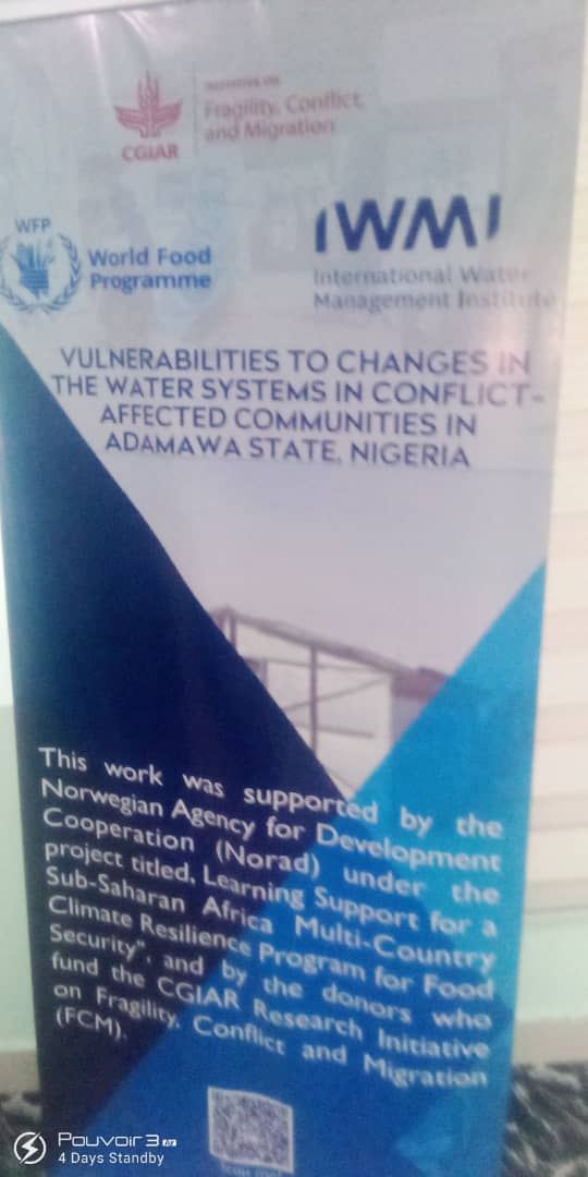 A one-day workshop on vulnerabilities to changes in the water system of conflict-affected communities in Adamawa state Nigeria was organized by the International Water Management Institute, (IWMI).in collaboration with the World Food Programme {WFP) and Initiative On Fragility, Conflict and Migration.