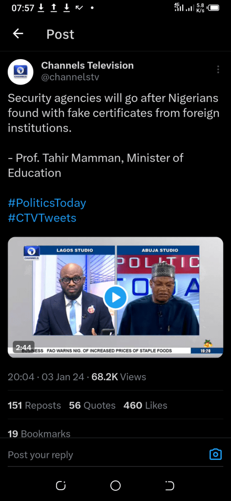 As the controversy over fake certificates from Benin Republic universities continues to reverberate following an investigative report, Nigerians on X (formerly Twitter) have asked the Minister of Education, Prof. Tahir Mamman, to start his action against fake certificate holders with President Bola Tinubu.