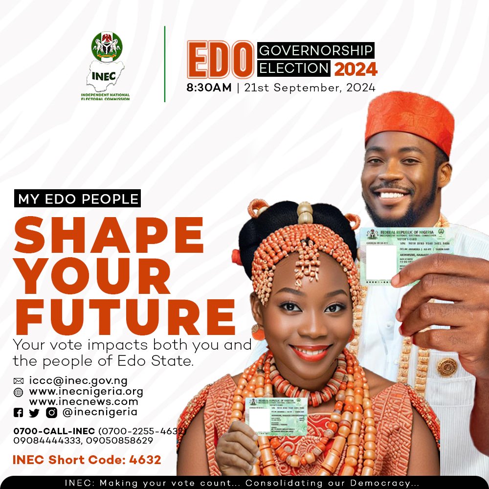 As Election Day approaches, INEC reminds citizens that their vote is not just a right but a powerful tool for change. This is the time to take a stand for the future you envision for Edo State.