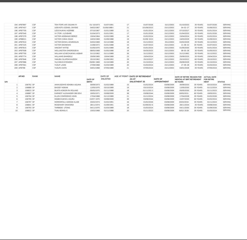 The scandal has rocked the Nigerian Police Force, with sources indicating that hundreds of other officers have also been implicated in forgery, document falsification, and manipulation of service records. While some of the officers have quietly retired, others are now facing forced retirement as authorities move to enforce disciplinary actions.