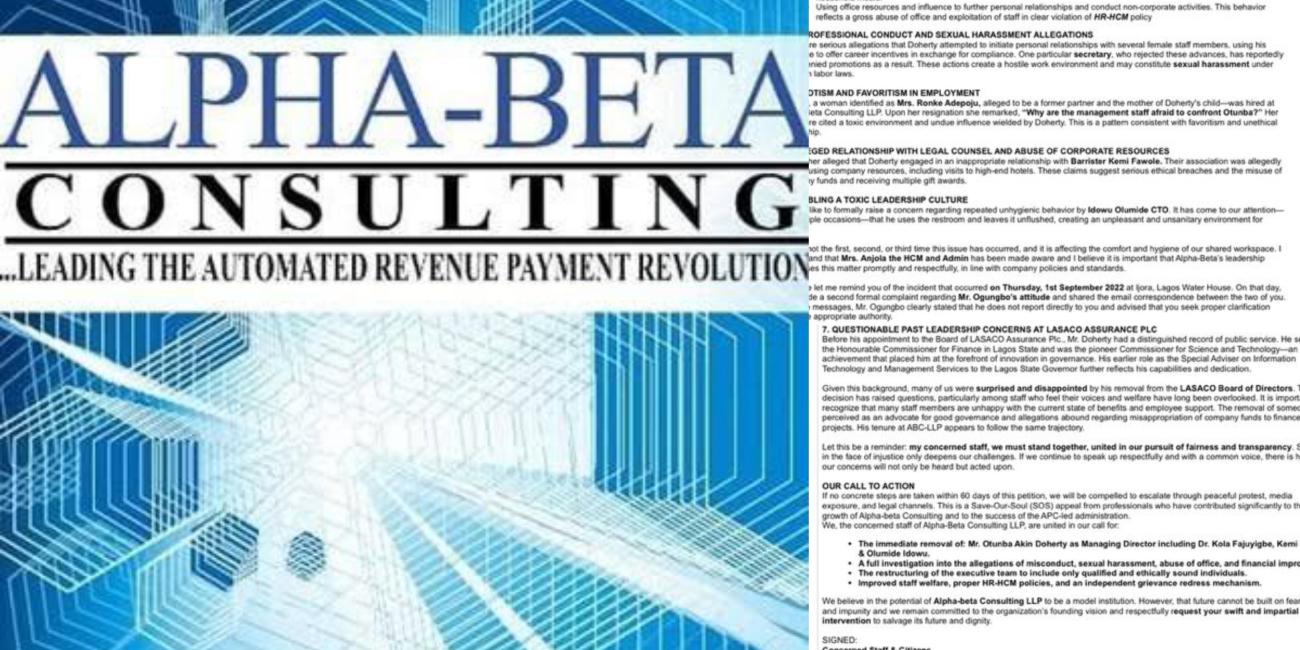 A storm of fury is brewing within the corridors of Alpha Beta Consulting LLP, the controversial tax firm widely linked to President Bola Ahmed Tinubu, following damning revelations of systemic discrimination, gross injustice, and preferential treatment that has left many long-serving employees disillusioned and betrayed.