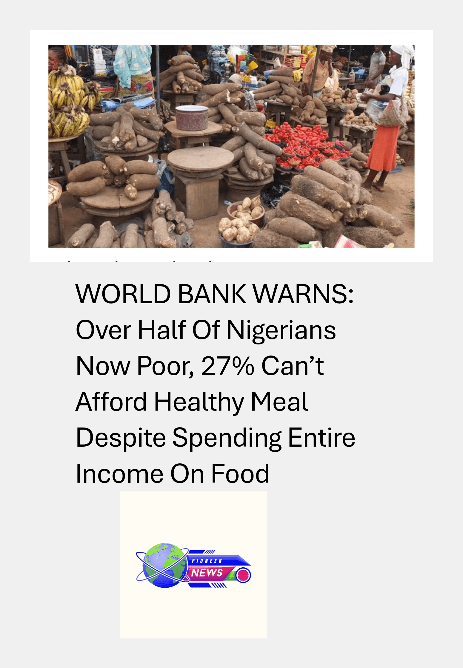 A new report by the World Bank has painted a grim portrait of Nigeria’s economy, revealing that over half of the country’s population now lives in poverty, while 27 percent of citizens cannot afford a healthy meal even if they spend all their income on food.