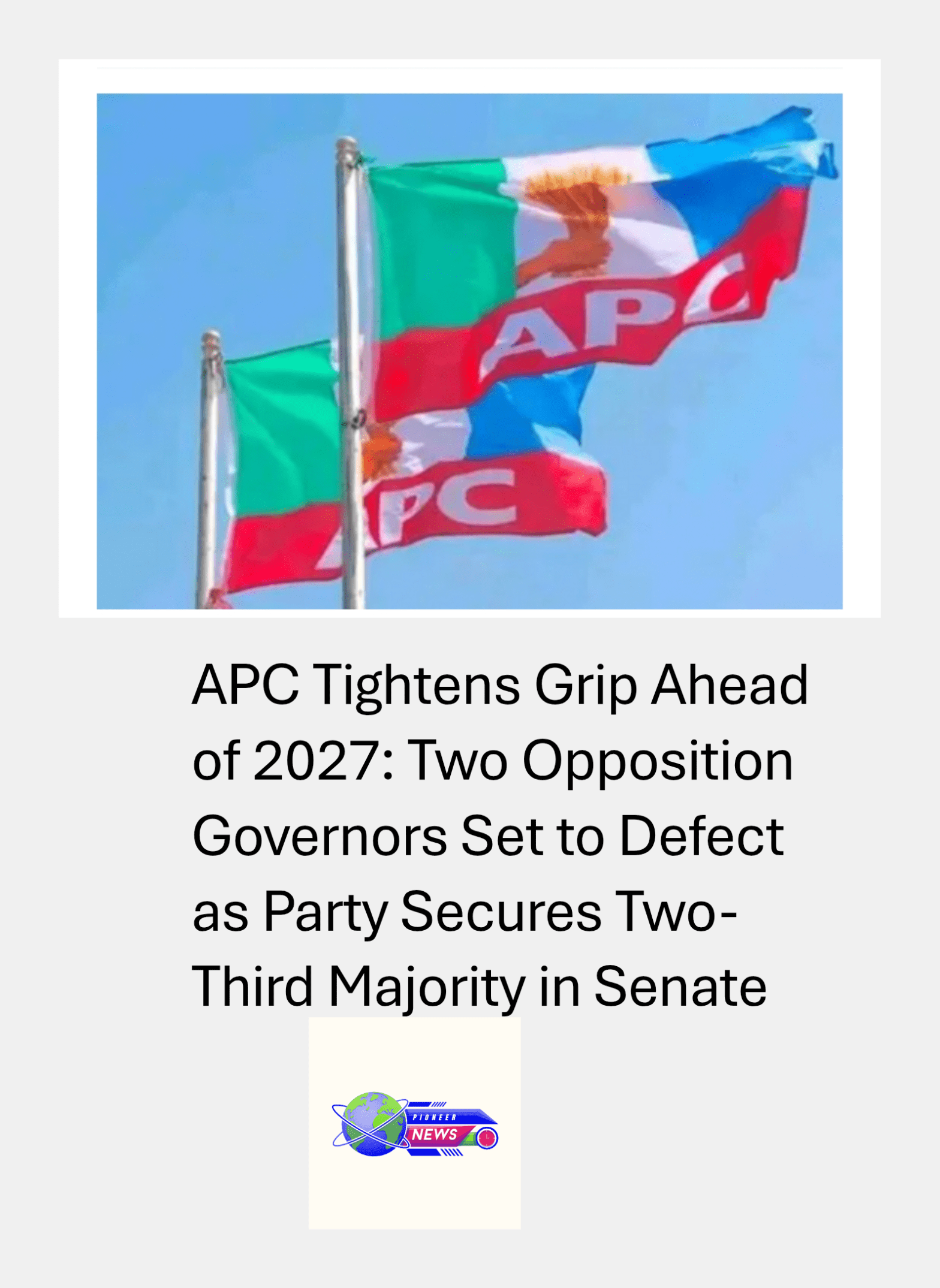The ruling All Progressives Congress (APC) is tightening its political grip ahead of the 2027 general elections, as two opposition governors—one from the Southeast and another from the North—are expected to defect to the party next week.