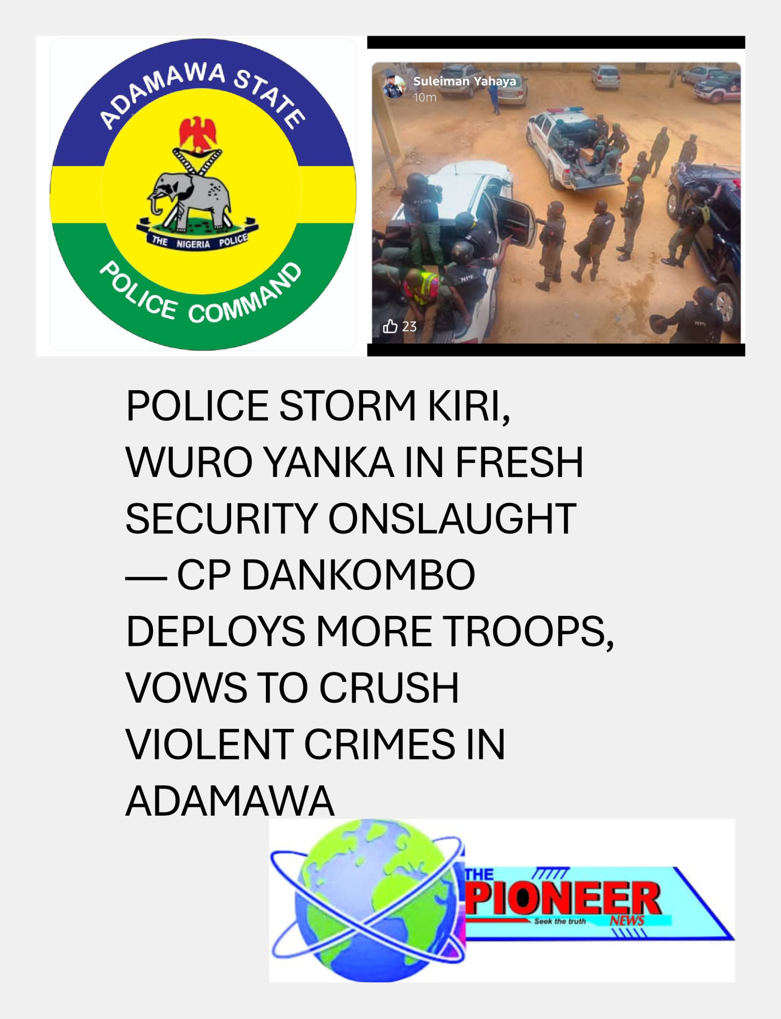 POLICE STORM KIRI, WURO YANKA IN FRESH SECURITY ONSLAUGHT — CP DANKOMBO DEPLOYS MORE TROOPS, VOWS TO CRUSH VIOLENT CRIMES IN ADAMAWA