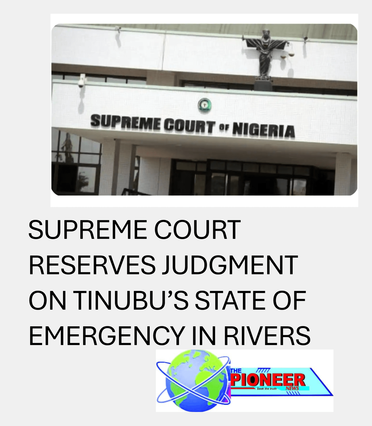ABUJA – The Supreme Court has reserved judgment in the suit challenging President Bola Ahmed Tinubu’s declaration of a state of emergency in Rivers State, a case that could shape the future interpretation of presidential powers in Nigeria’s democratic setting.