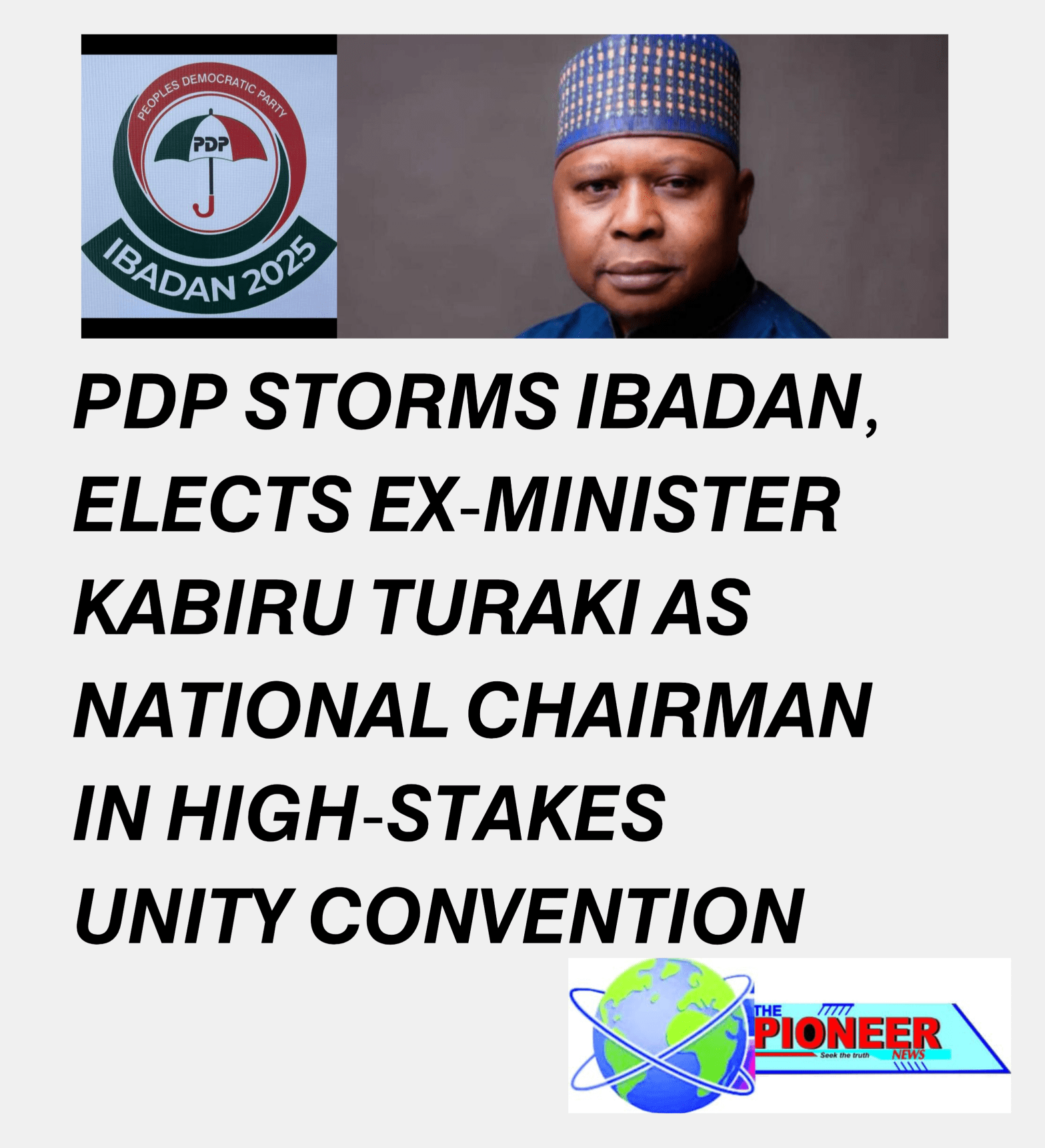 PDP STORMS IBADAN, ELECTS EX-MINISTER KABIRU TURAKI AS NATIONAL CHAIRMAN IN HIGH-STAKES UNITY CONVENTION