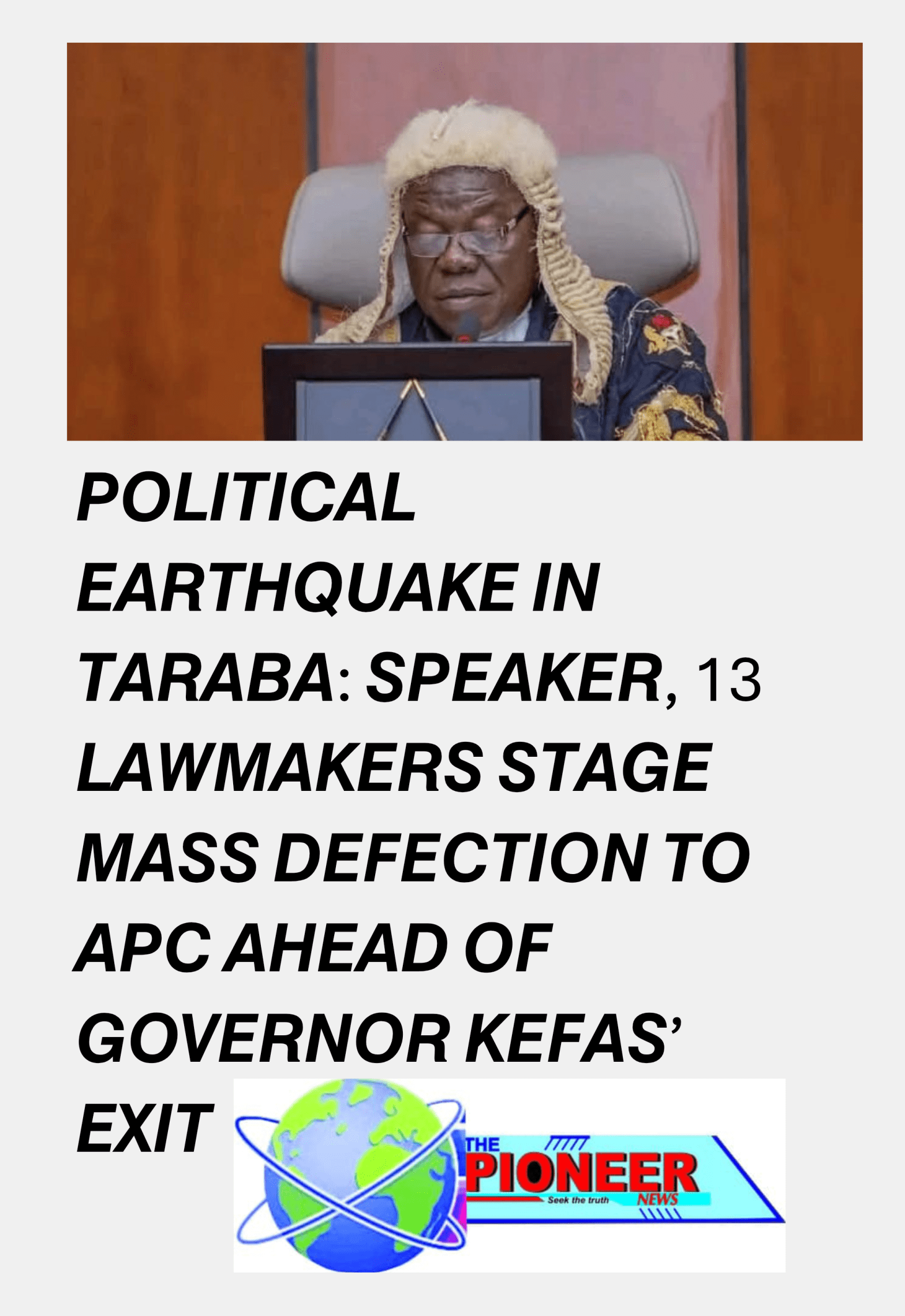 POLITICAL EARTHQUAKE IN TARABA: SPEAKER, 13 LAWMAKERS STAGE MASS DEFECTION TO APC AHEAD OF GOVERNOR KEFAS’ EXIT