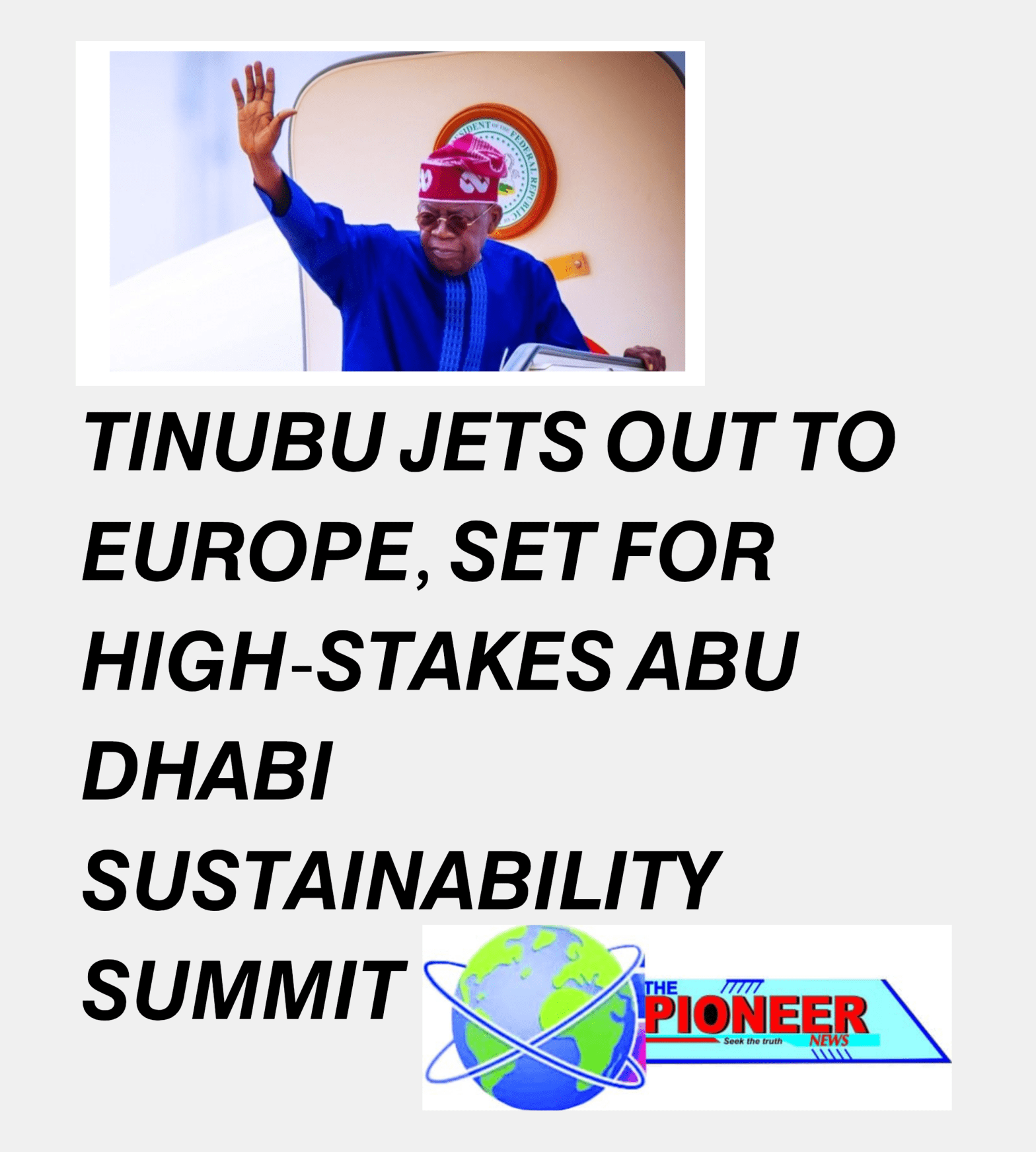 President Bola Ahmed Tinubu has departed Nigeria for Europe as part of his end-of-year engagements, ahead of a major international appearance at the 2026 Abu Dhabi Sustainability Week (ADSW) in the United Arab Emirates, a global forum that draws world leaders, policymakers, captains of industry and development experts.