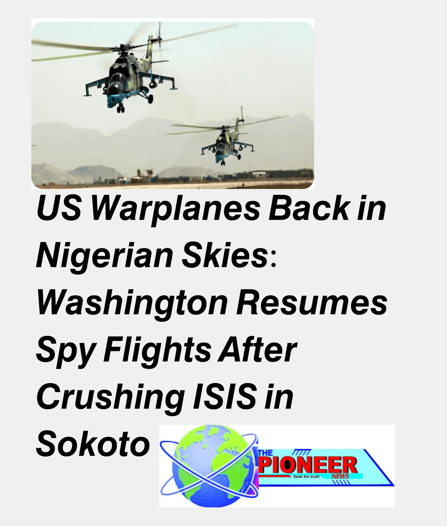 US Warplanes Back in Nigerian Skies: Washington Resumes Spy Flights After Crushing ISIS in Sokoto