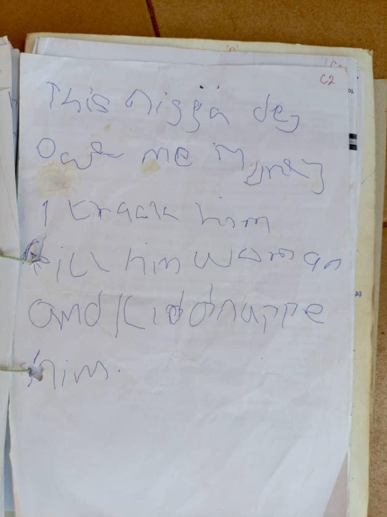 In a desperate attempt to evade justice, Chibuike reportedly planted a fake letter, falsely claiming he had been kidnapped by his creditors. Investigators believe the fabricated note was designed to mislead security agencies and facilitate his escape after committing the crime.