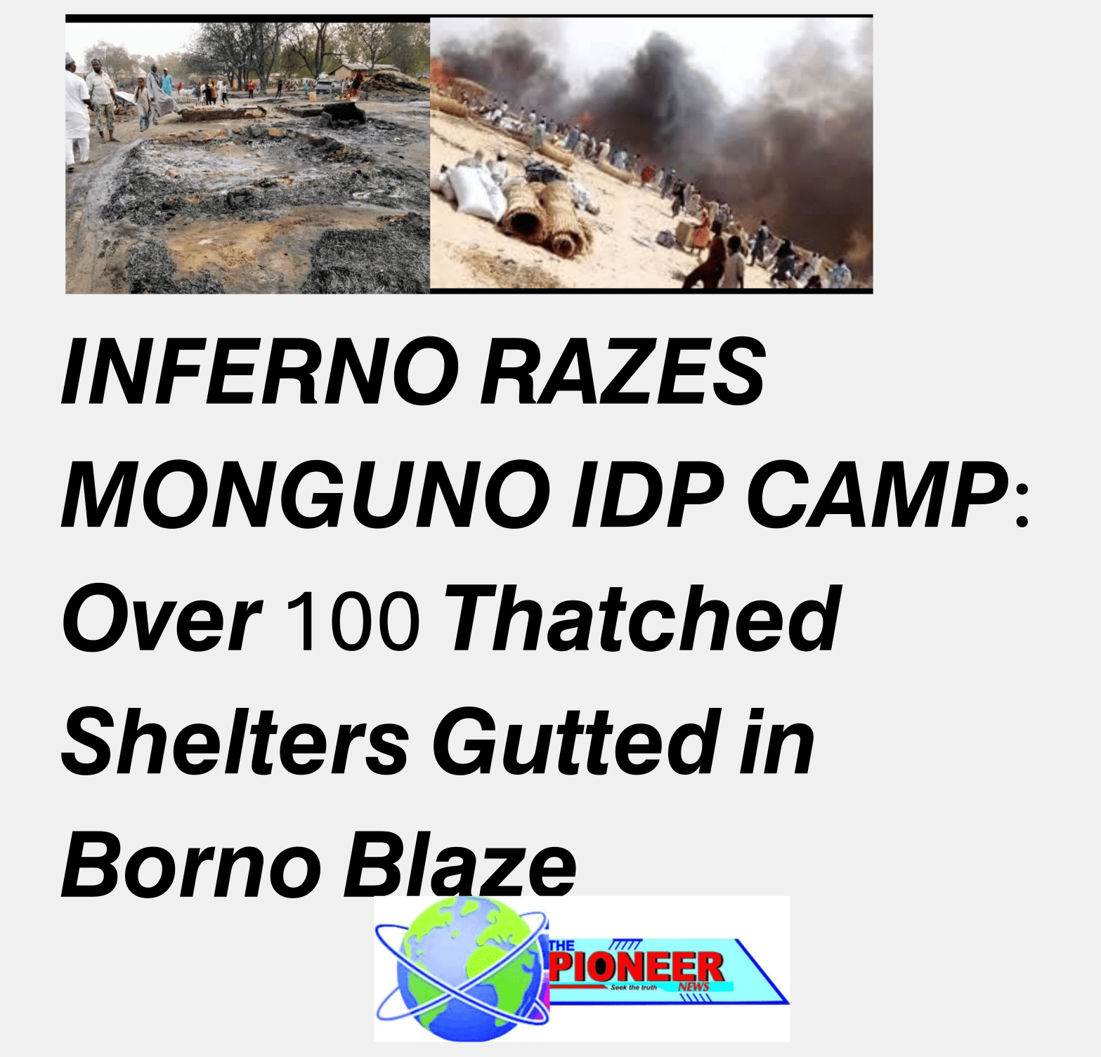 INFERNO RAZES MONGUNO IDP CAMP: Over 100 Thatched Shelters Gutted in Borno Blaze