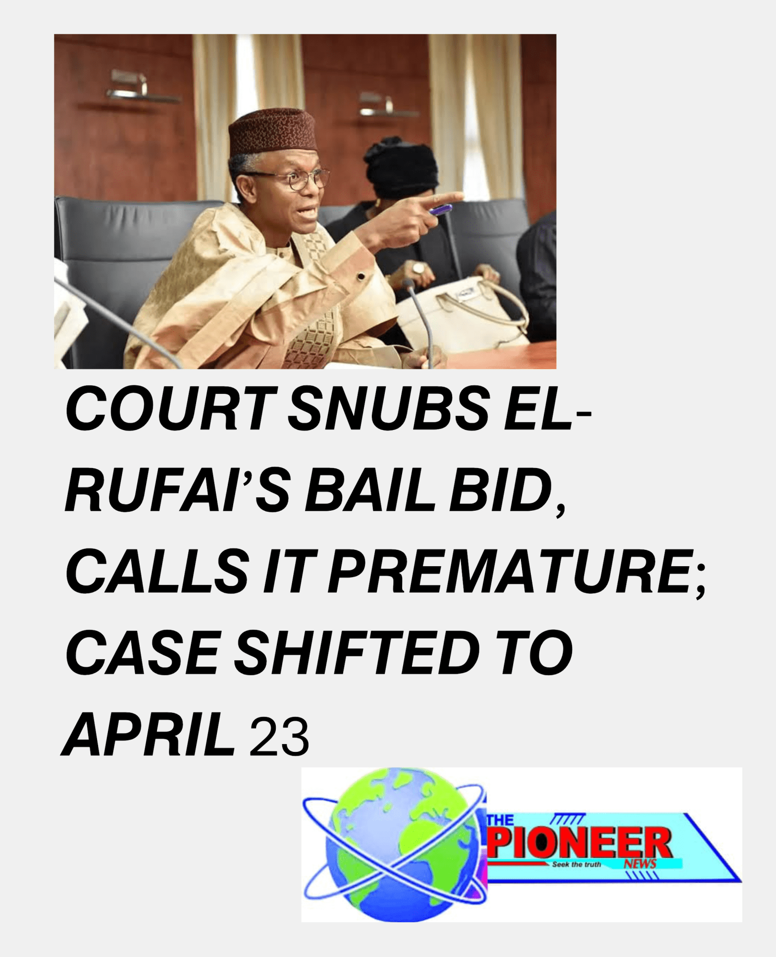 Abuja — The legal troubles of former Kaduna State Governor Nasir Ahmad El‑Rufai deepened on Monday as the Federal High Court refused to entertain his bail application, declaring it premature, and adjourned the matter to April 23 for formal arraignment.