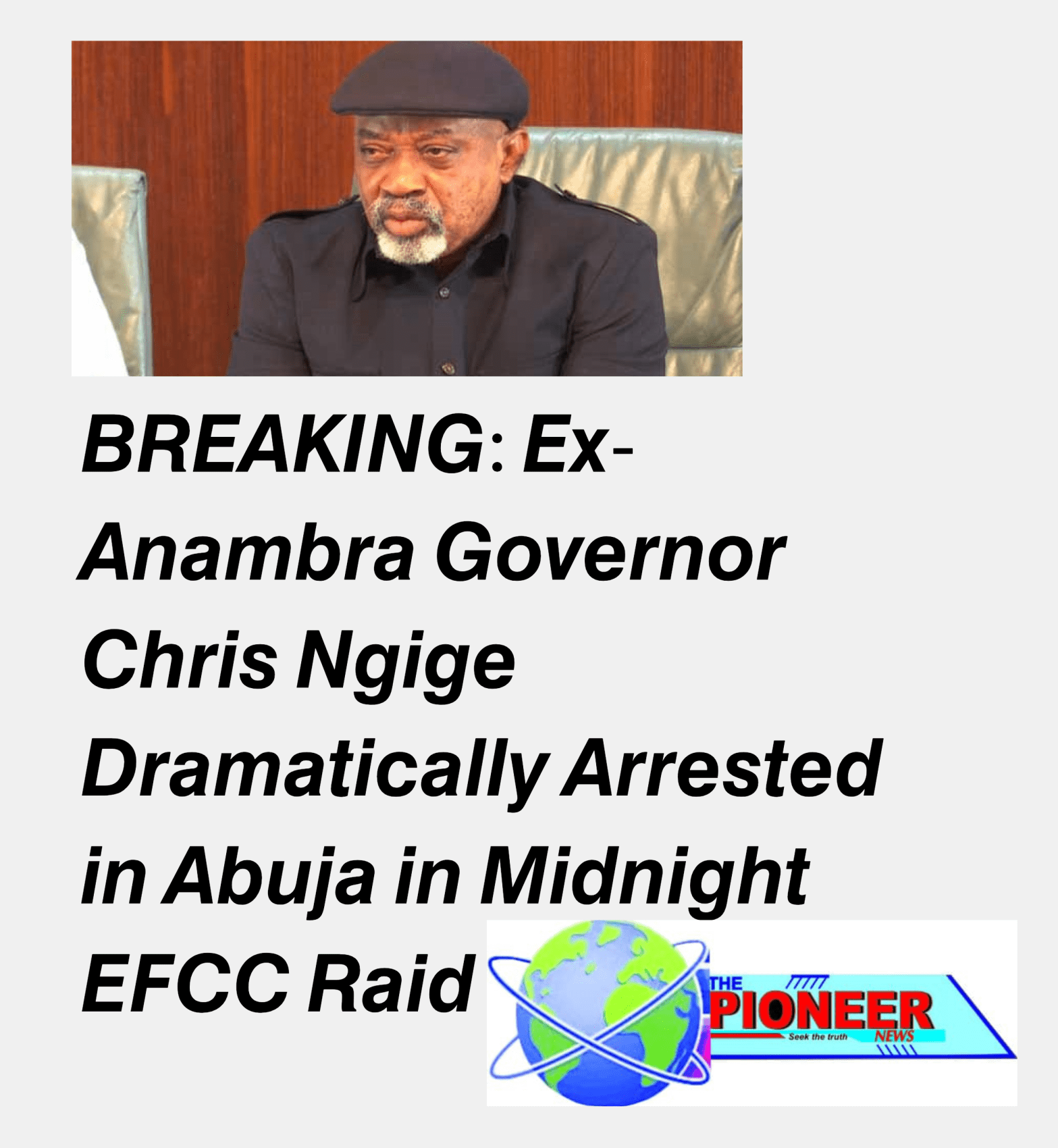 Former Anambra State Governor and immediate past Minister of Labour and Employment, Senator Chris Ngige, has been dramatically arrested by security operatives during a late-night operation at his Abuja residence, sparking nationwide shock and speculation.The arrest took place at his home on Justice Mohammed Bello Street, Abuja, under tense circumstances. Witnesses reported the presence ofContinueContinue reading “BREAKING: Ex-Anambra Governor Chris Ngige Dramatically Arrested in Abuja in Midnight EFCC Raid”