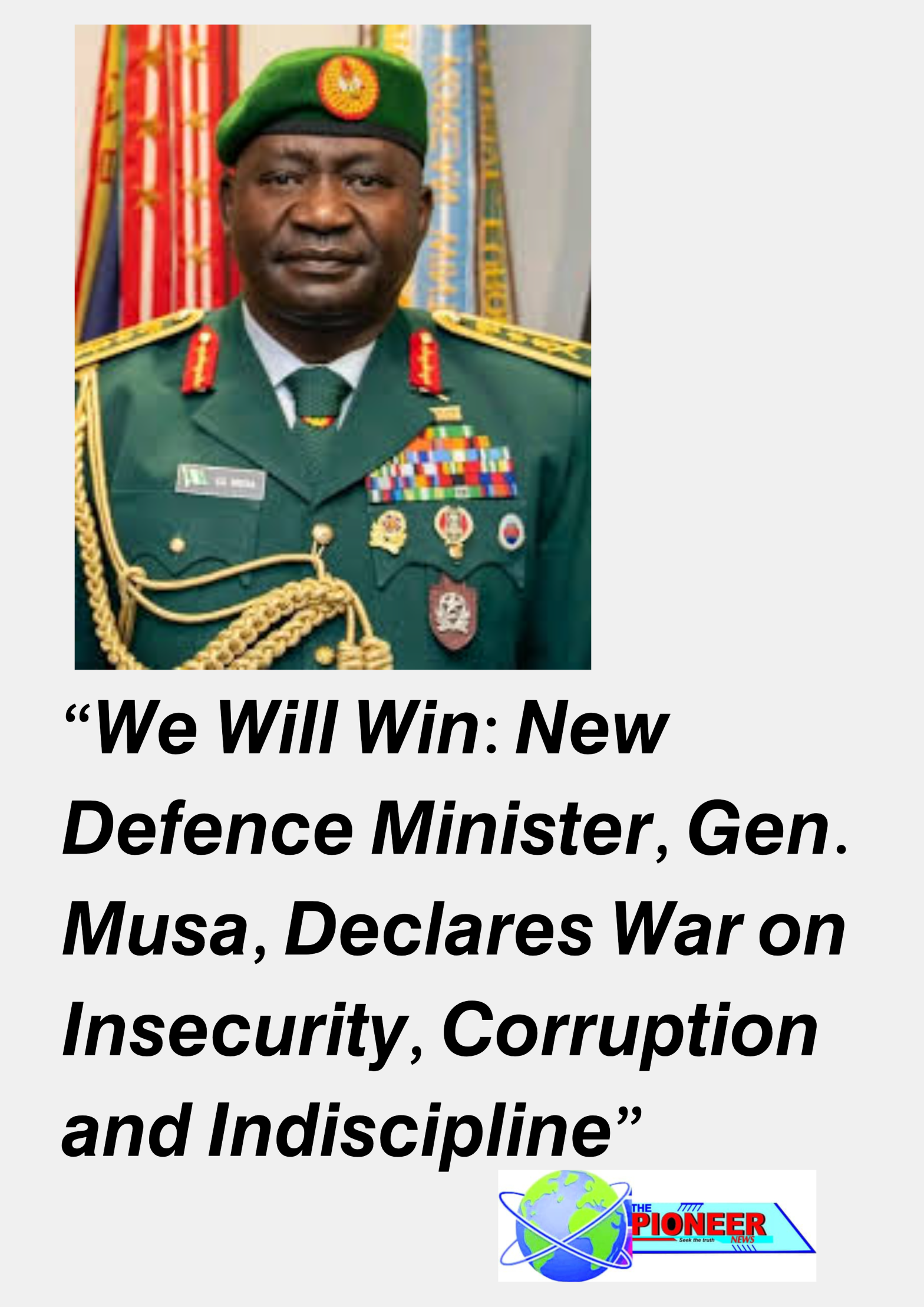 “We Will Win: New Defence Minister, Gen. Musa, Declares War on Insecurity, Corruption and Indiscipline”
