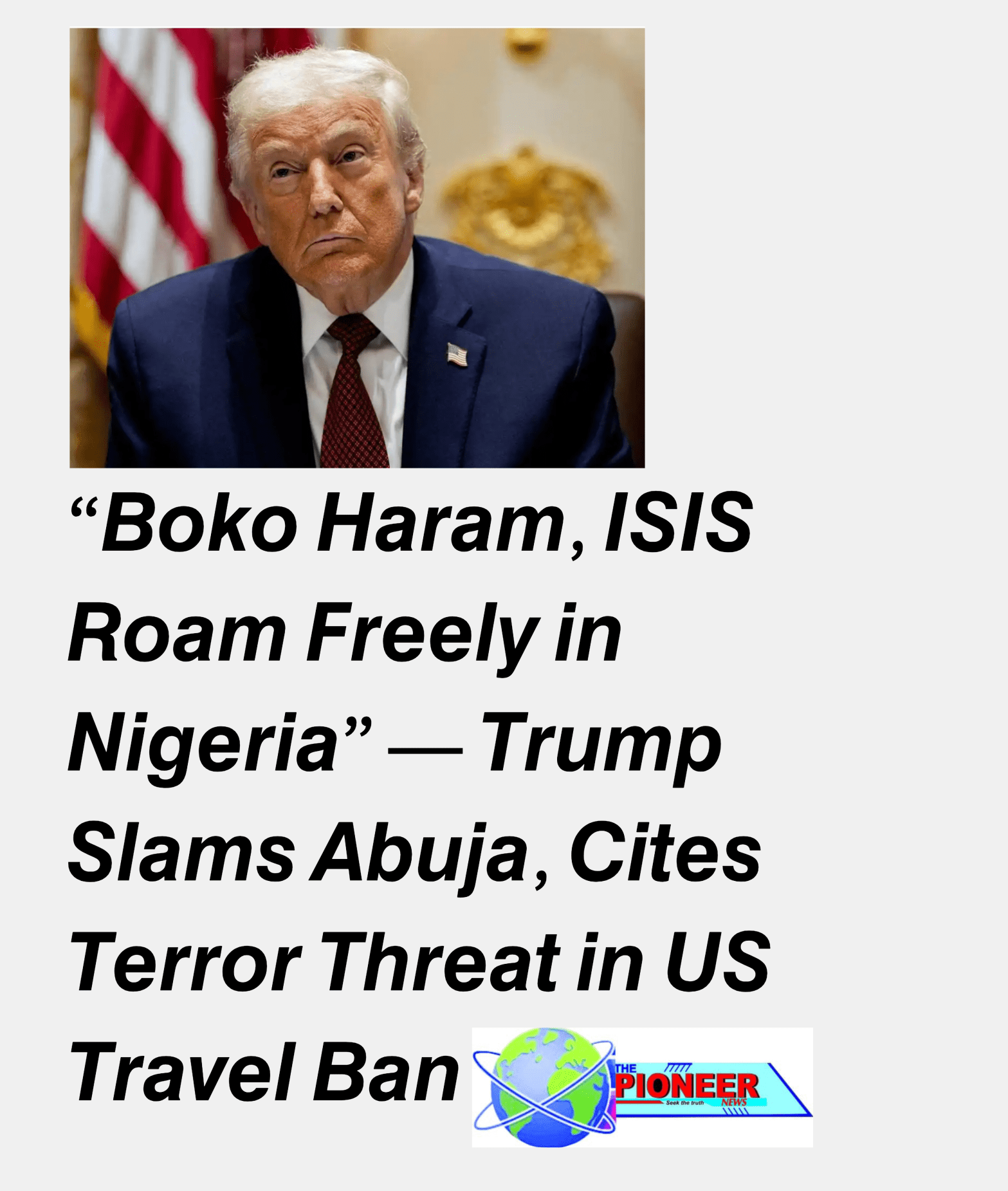 “Boko Haram, ISIS Roam Freely in Nigeria” — Trump Slams Abuja, Cites Terror Threat in US Travel Ban