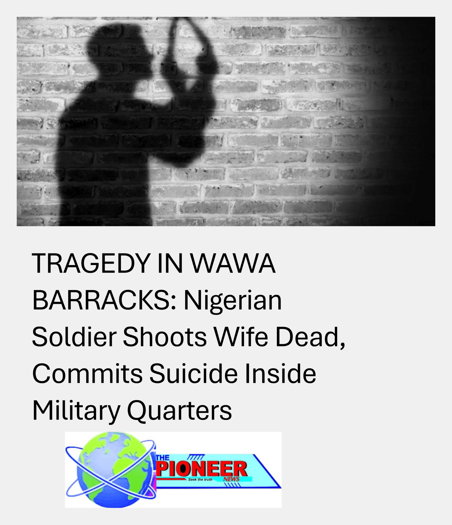 A chilling tragedy struck the Wawa Military Cantonment in New Bussa, Kainji, Niger State, on Saturday when a Nigerian Army personnel identified as Lance Corporal Femi Akinleye reportedly shot his wife dead before turning the gun on himself.The incident occurred around 11:30 a.m. inside Block 15, Room 24 of the soldiers’ residential quarters at theContinueContinue reading “TRAGEDY IN WAWA BARRACKS: Nigerian Soldier Shoots Wife Dead, Commits Suicide Inside Military Quarters”