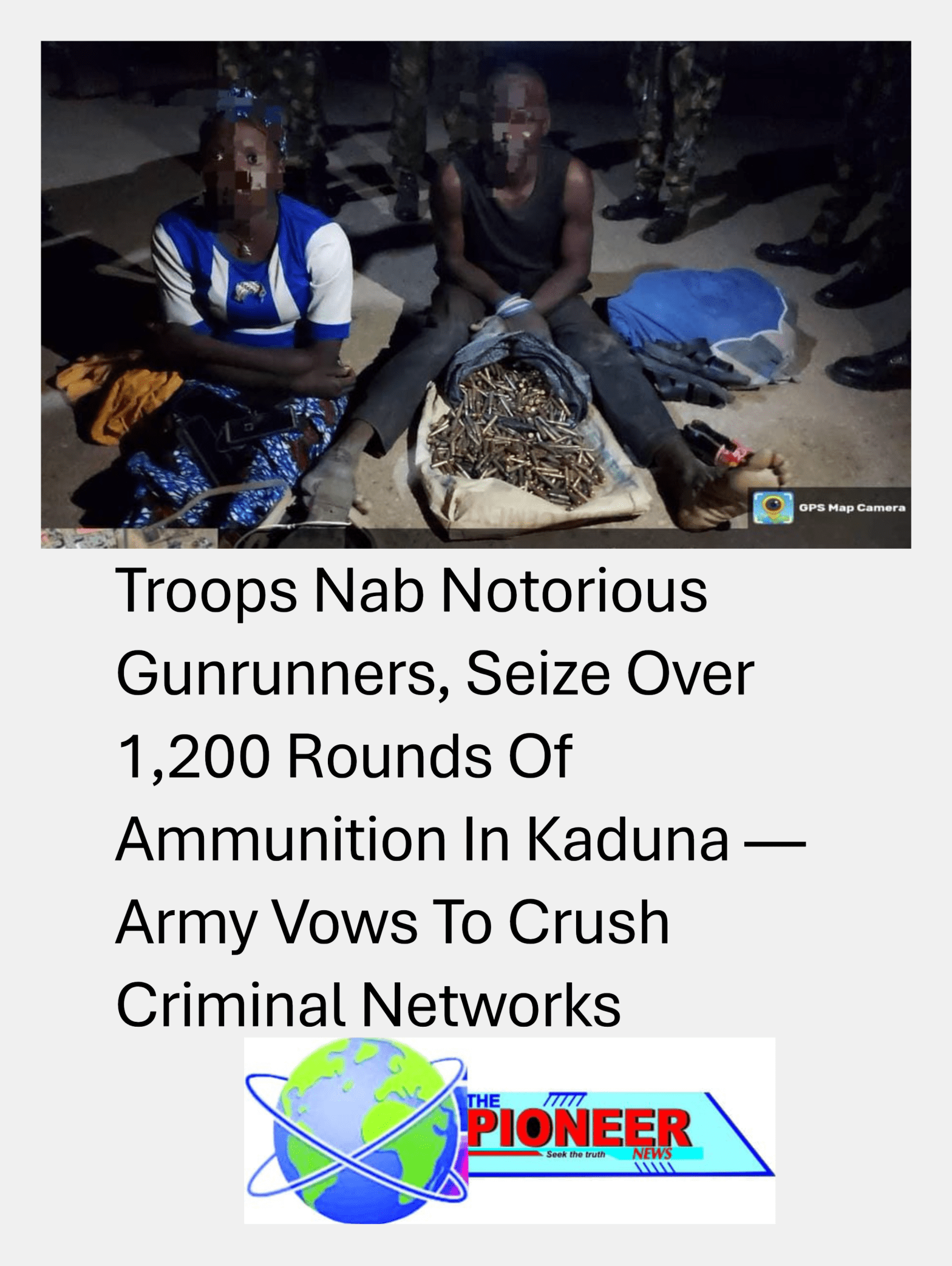 Troops Nab Notorious Gunrunners, Seize Over 1,200 Rounds Of Ammunition In Kaduna — Army Vows To Crush Criminal Networks