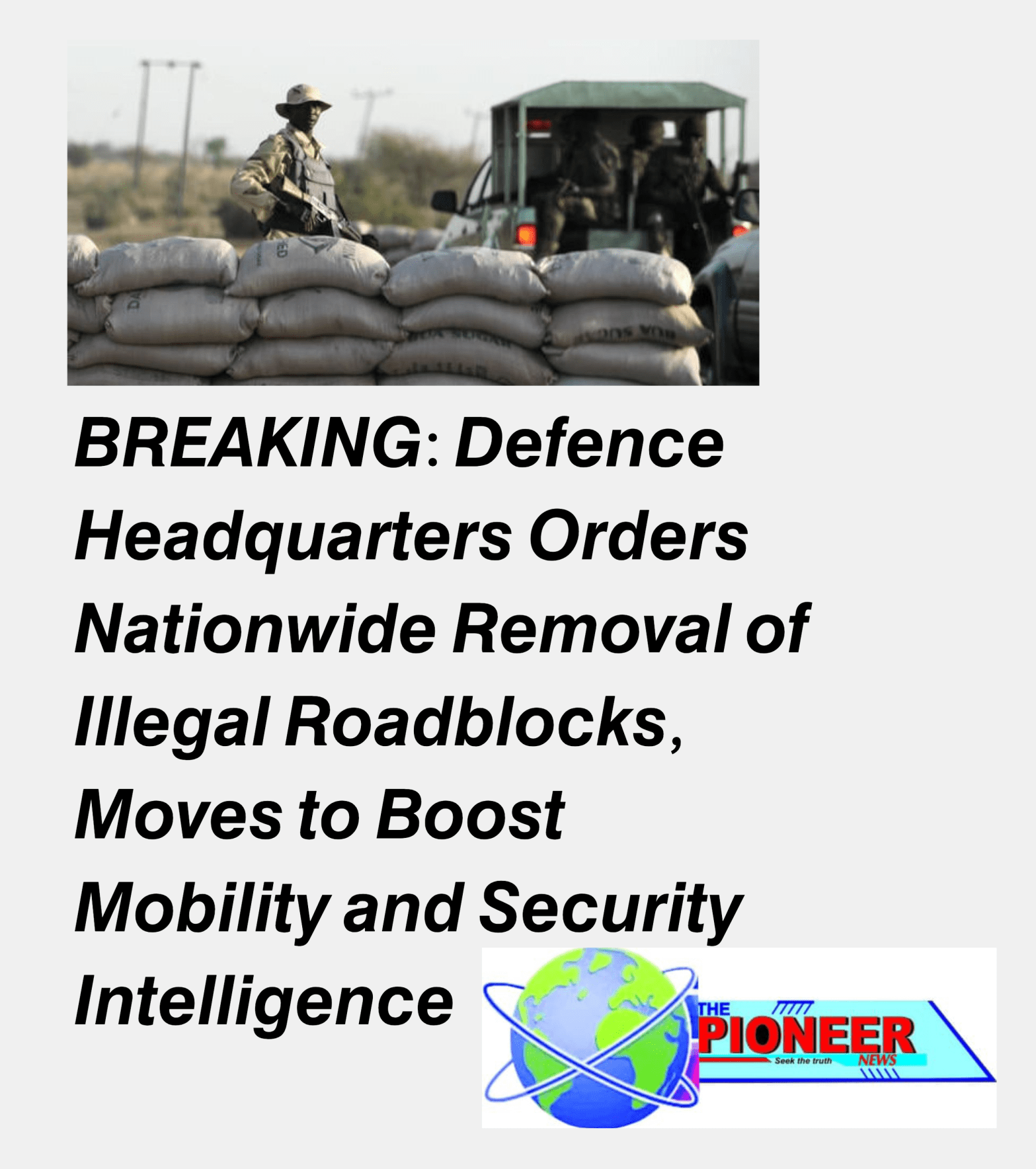 Sahara reporters has taken to its official X handle and announced that, the Defence Headquarters (DHQ) has issued a decisive order for the immediate dismantling of all non-essential roadblocks and unauthorized checkpoints across Nigeria’s major highways, in a sweeping move aimed at enhancing operational efficiency and restoring smooth movement for civilians and security forces.The directive,ContinueContinue reading “BREAKING: Defence Headquarters Orders Nationwide Removal of Illegal Roadblocks, Moves to Boost Mobility and Security Intelligence”