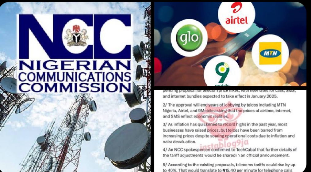 In a groundbreaking announcement, the Nigerian Communications Commission (NCC) has disclosed plans to implement a long-anticipated telecom price adjustment. According to Nigerian Stories’ official handle on X (formerly Twitter), the revised tariffs for calls, SMS, and internet bundles are slated to take effect from January 2025.The move is expected to impact millions of telecom usersContinueContinue reading ““NCC Set to Approve Telecom Tariff Hikes: New Rates for Calls, SMS, and Internet to Begin January 2025””