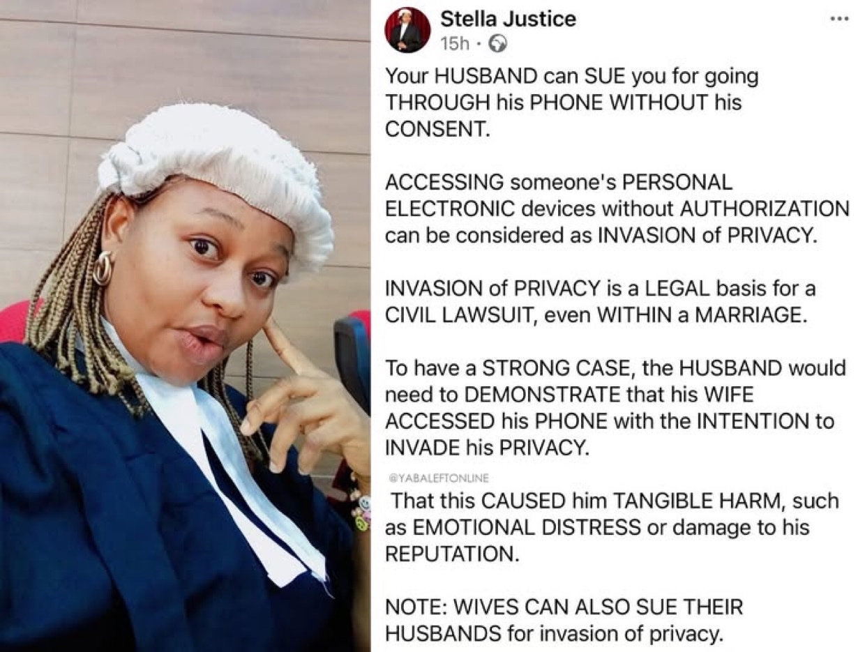 “Your Husband Can Sue You for Checking His Phone Without Consent” – Nigerian Lawyer Sparks Debate