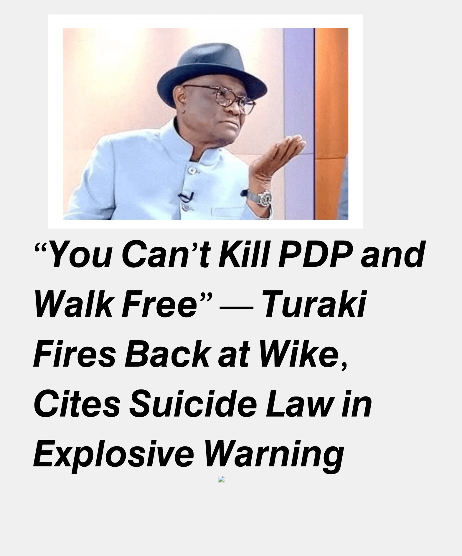 “You Can’t Kill PDP and Walk Free” — Turaki Fires Back at Wike, Cites Suicide Law in Explosive Warning