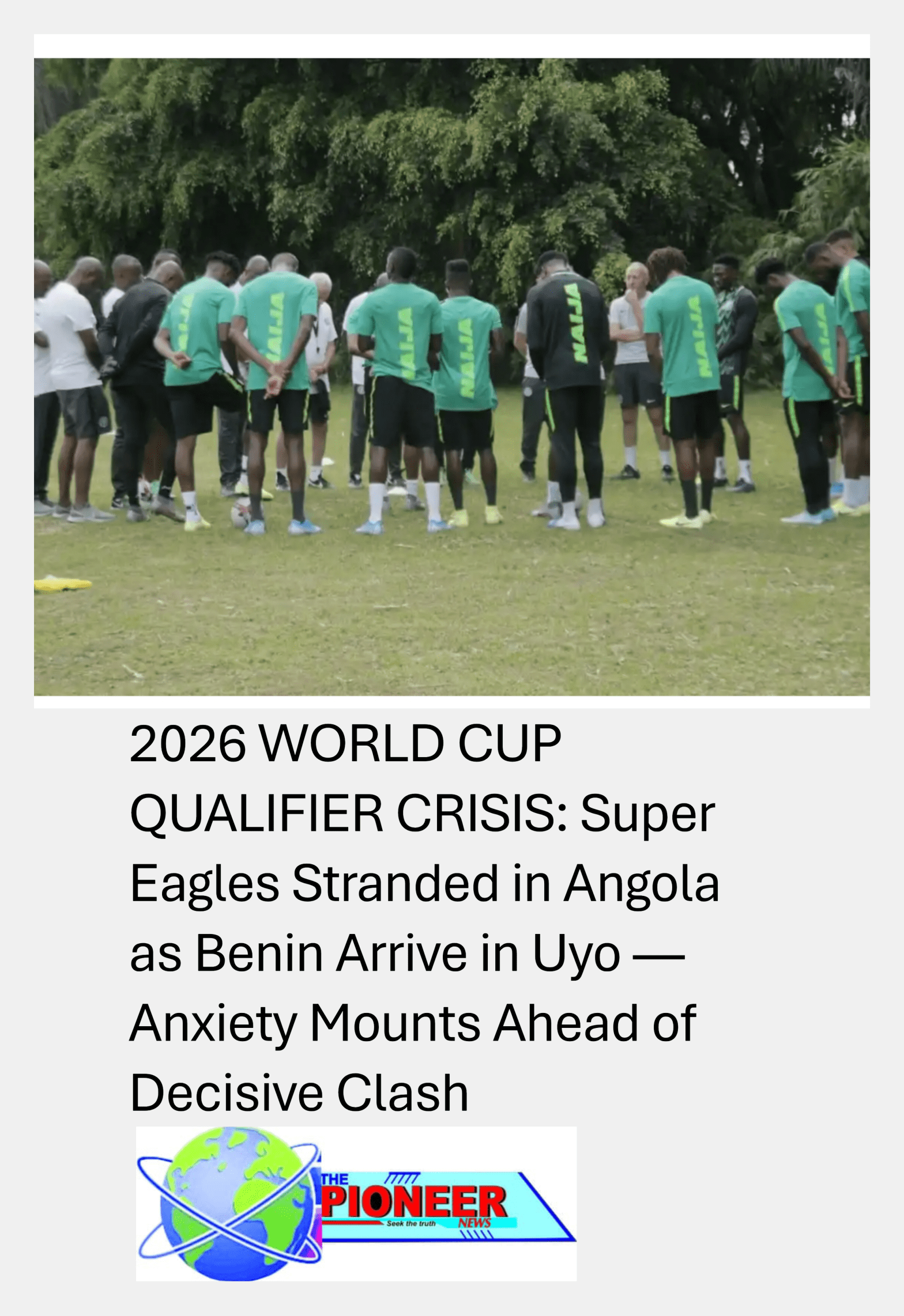 2026 WORLD CUP QUALIFIER CRISIS: Super Eagles Stranded in Angola as Benin Arrive in Uyo — Anxiety Mounts Ahead of Decisive Clash