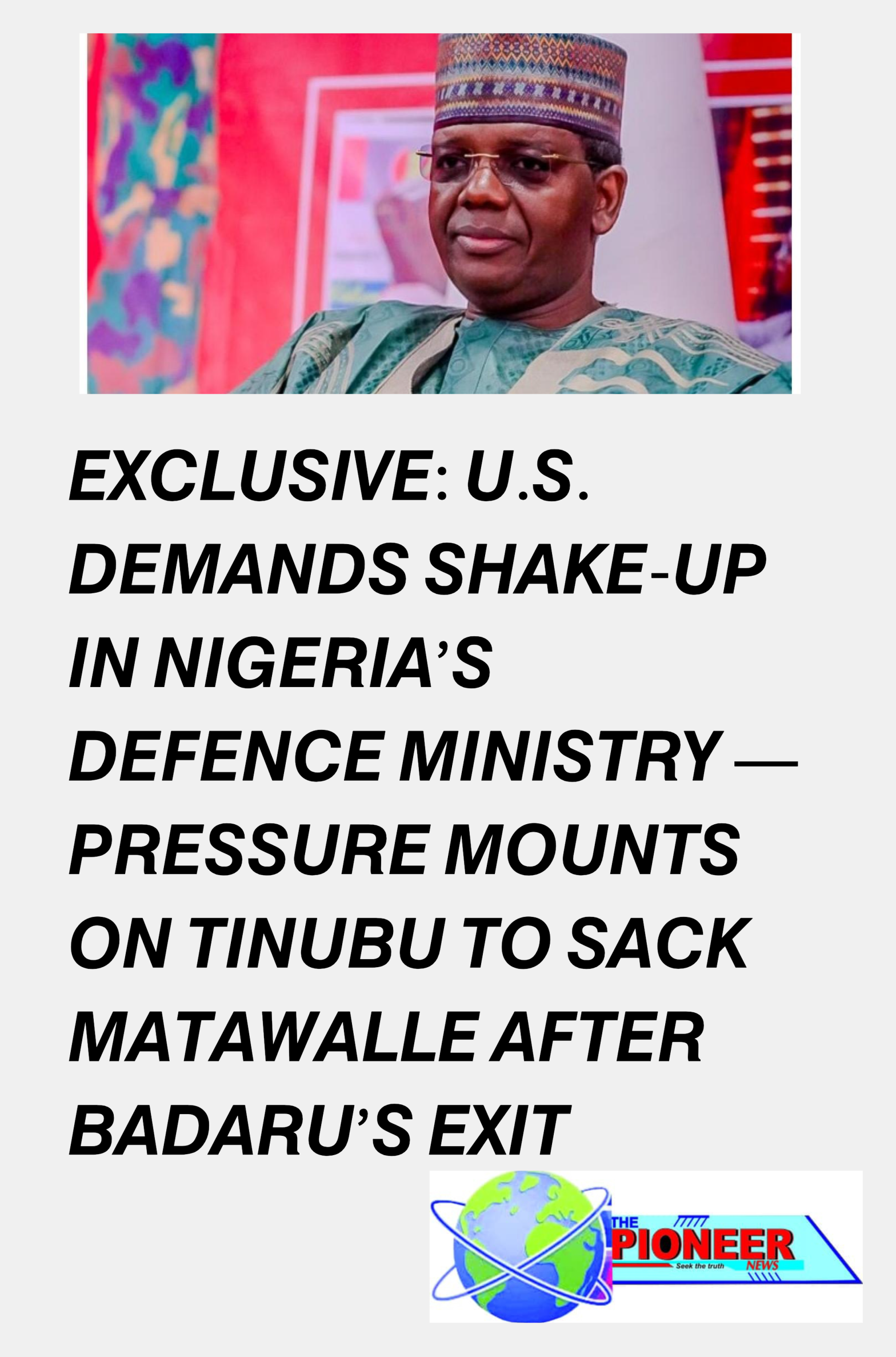 EXCLUSIVE: U.S. DEMANDS SHAKE-UP IN NIGERIA’S DEFENCE MINISTRY — PRESSURE MOUNTS ON TINUBU TO SACK MATAWALLE AFTER BADARU’S EXIT
