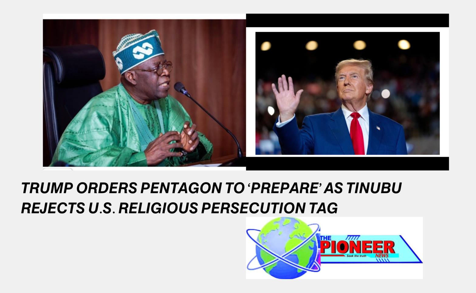 TRUMP ORDERS PENTAGON TO ‘PREPARE’ AS TINUBU REJECTS U.S. RELIGIOUS PERSECUTION TAG