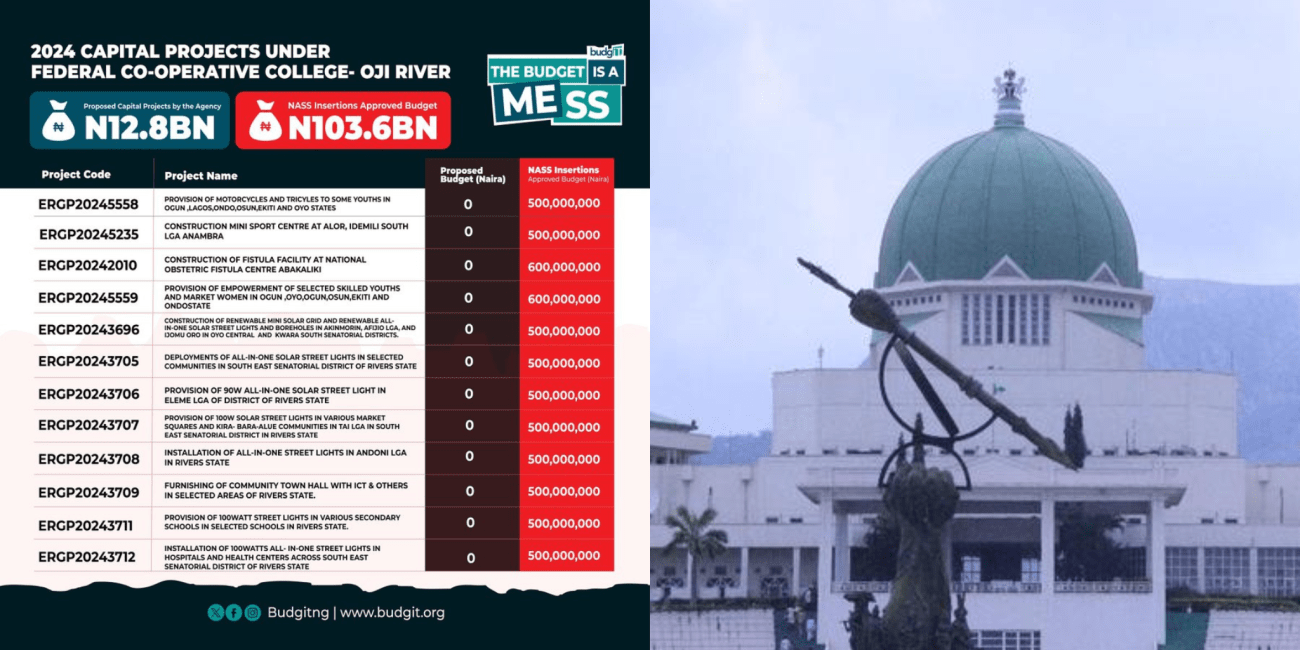 The National Assembly has once again come under fire for alleged budget padding, this time inflating the 2024 budget of the Federal Cooperative College, Oji River, Enugu, by a staggering ₦90.8 billion—an increase of over 5,000% from the institution’s proposed allocation.Investigative reports by BudgIT Foundation, a civic tech organisation dedicated to transparency in governance, revealedContinue reading "Budget Padding Scandal: Nigerian Lawmakers Inflate College Budget by Over N90 Billion"