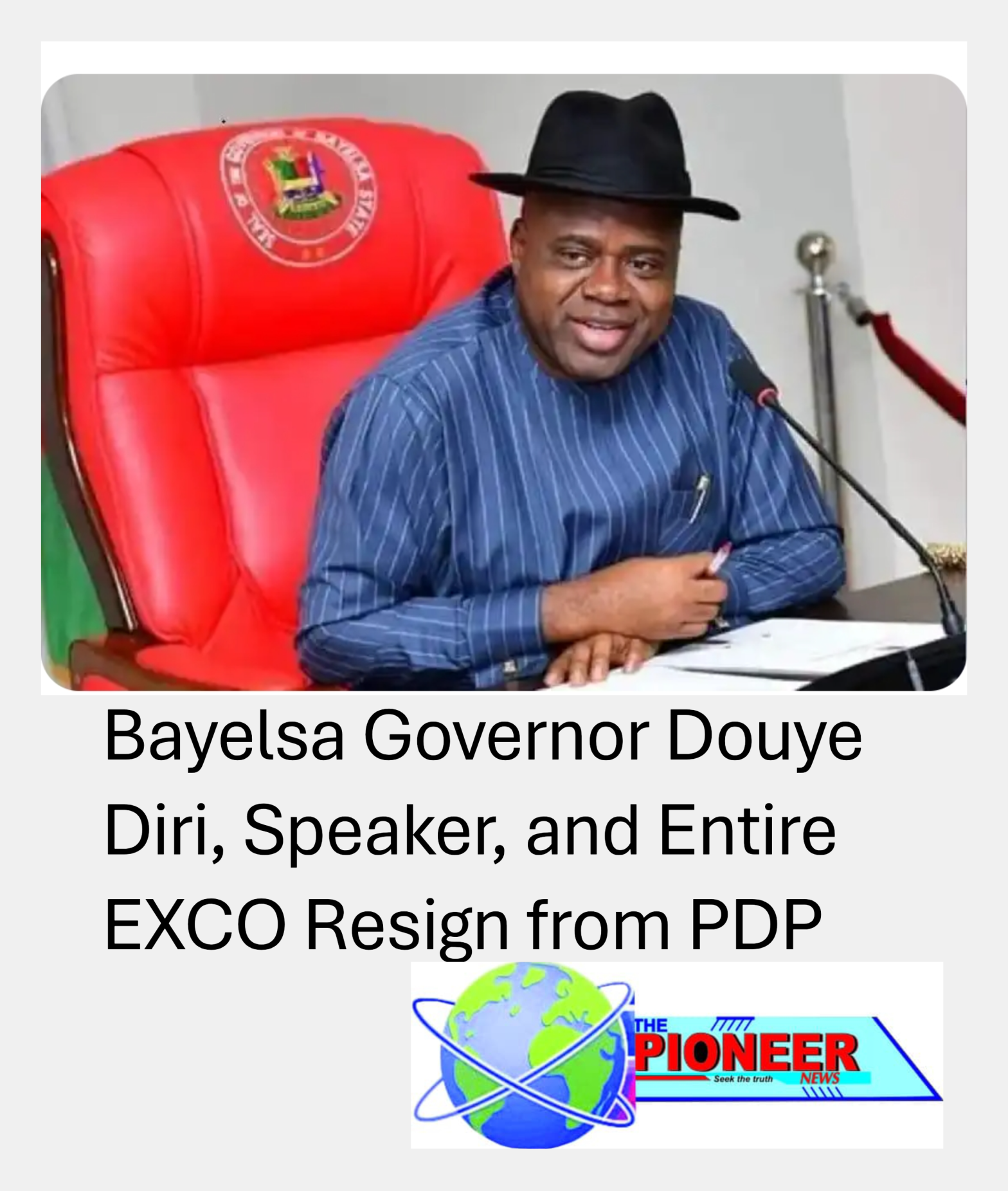 In a major political development that has sent ripples through the nation’s political space, the Governor of Bayelsa State, Senator Douye Diri, has formally resigned from the Peoples Democratic Party (PDP).The governor announced his resignation on Wednesday during a session held at the Executive Council Chamber of the Bayelsa Government House in Yenagoa. Diri, however,Continue reading "Bayelsa Governor Douye Diri, Speaker, and Entire EXCO Resign from PDP"