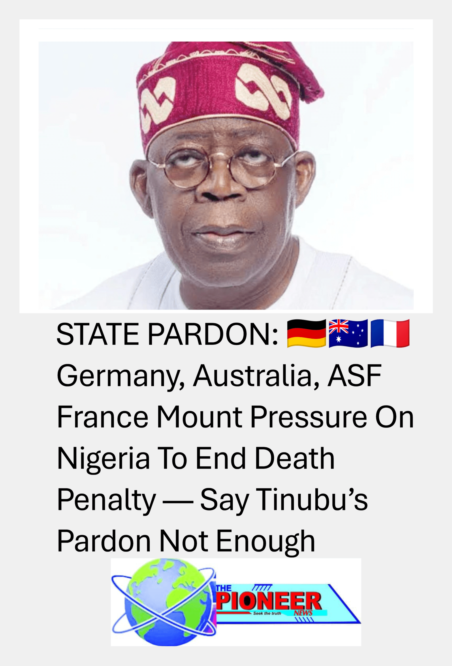 STATE PARDON: 🇩🇪🇦🇺🇫🇷 Germany, Australia, ASF France Mount Pressure On Nigeria To End Death Penalty — Say Tinubu’s Pardon Not Enough